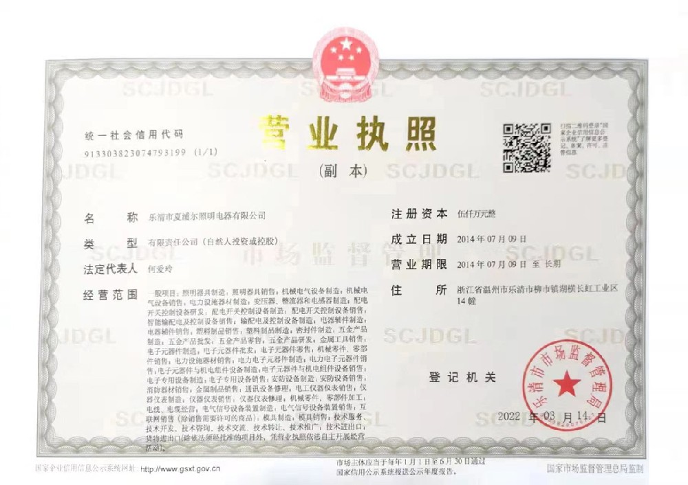樂清市夏浦爾照明電器有限公司